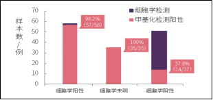 图4 130例肺癌样本的细胞学结果及双基因甲基化结果[5]