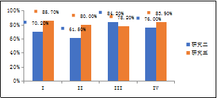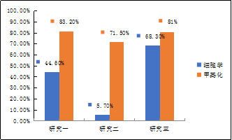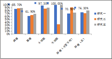 图3各研究细胞学与双基因甲基化检测灵敏度比较